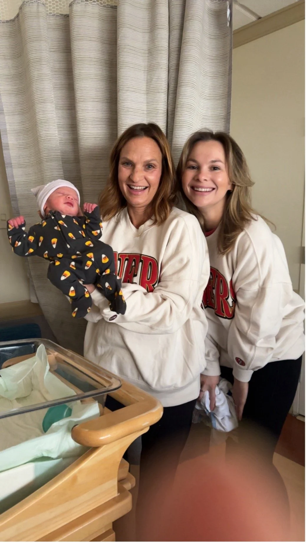 Our October-born, first great-grandson, Baker Jackson, with his Grandma Angie and Auntie Mackenzie. A bundle of sweetness is wrapped up in those tiny candy corn jammies!